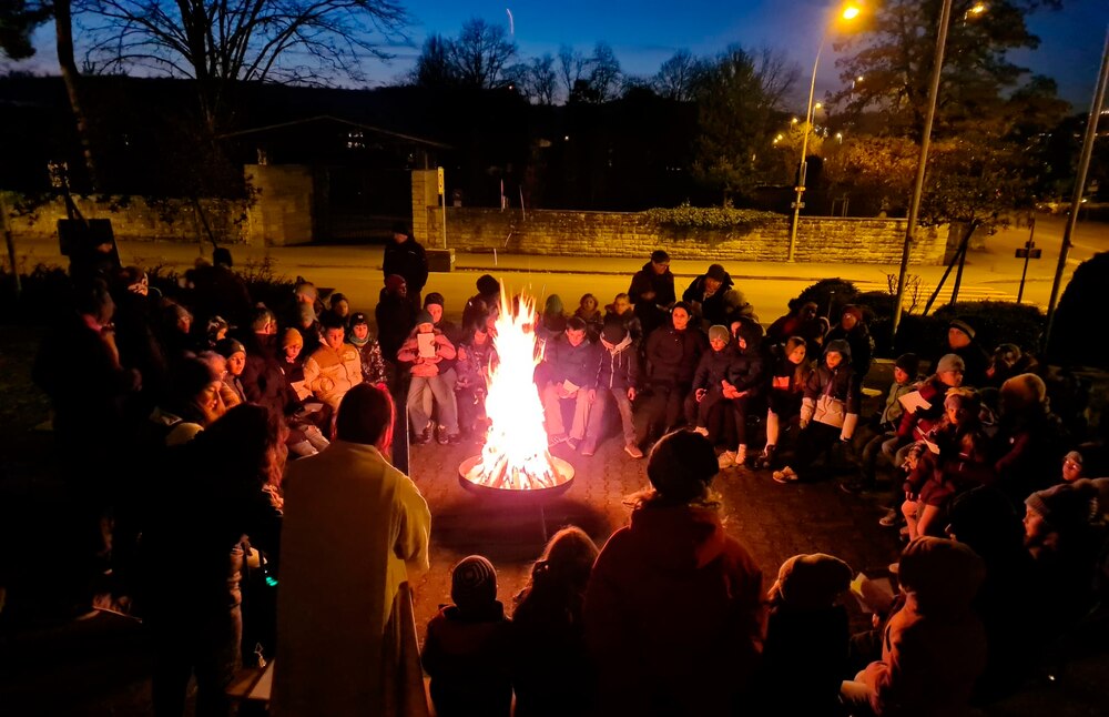 Bei frostigen Temperaturen haben wir im Gottesdienst draussen rund um die Feuerschale die Geschichte von Tobit und seinem Sohn Tobias gehört, der einige Abenteuer erlebt hat, aber – wie sich am Schluss der Geschichte gezeigt hat – immer einen Schutzengel an seiner Seite hatte.