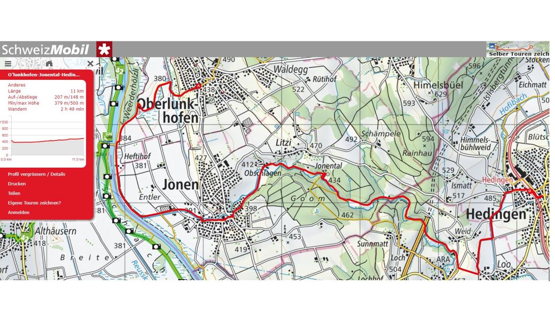 Von Oberlunkofen durch das Jonental nach Hedingen.