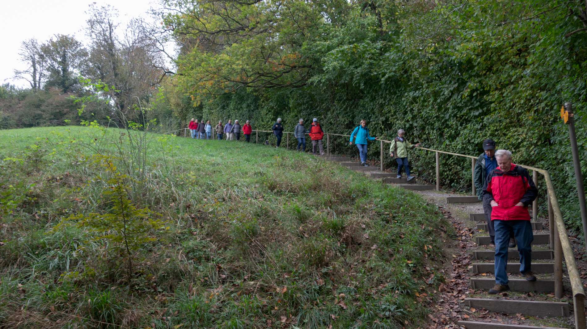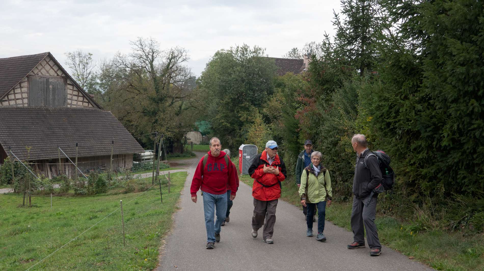 Oberlunkhofen war der Ausgangspunkt unserer letzten Wanderung in diesem Jahr. Bergab ging es zum Naturschutzgebiet in der Ebene bis an die nahe Reuss. Dem Fluss entlang entdeckten wir immer wieder schöne Bauernhöfe, auf dem Dach einen Storch und viel buntes Laub an den Bäumen. So ging es gemütlich dem Damm entlang bis nach Jonen und weiter ins Jonental. Einige der Gruppe waren schon anlässlich einer Wallfahrt hier gewesen und wussten davon zu erzählen. Bald erreichten wir die Wallfahrtskapelle, die auch gleich unser Rastplatz fürs Picknick war. Frisch gestärkt machten wir uns auf den romantischen Weg nach Hedingen, wo wir im Café Pfyl unser Wanderjahr ausklingen liessen.